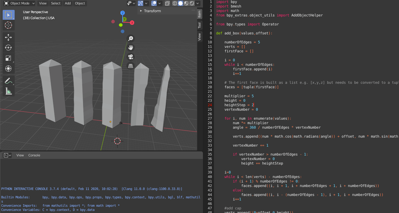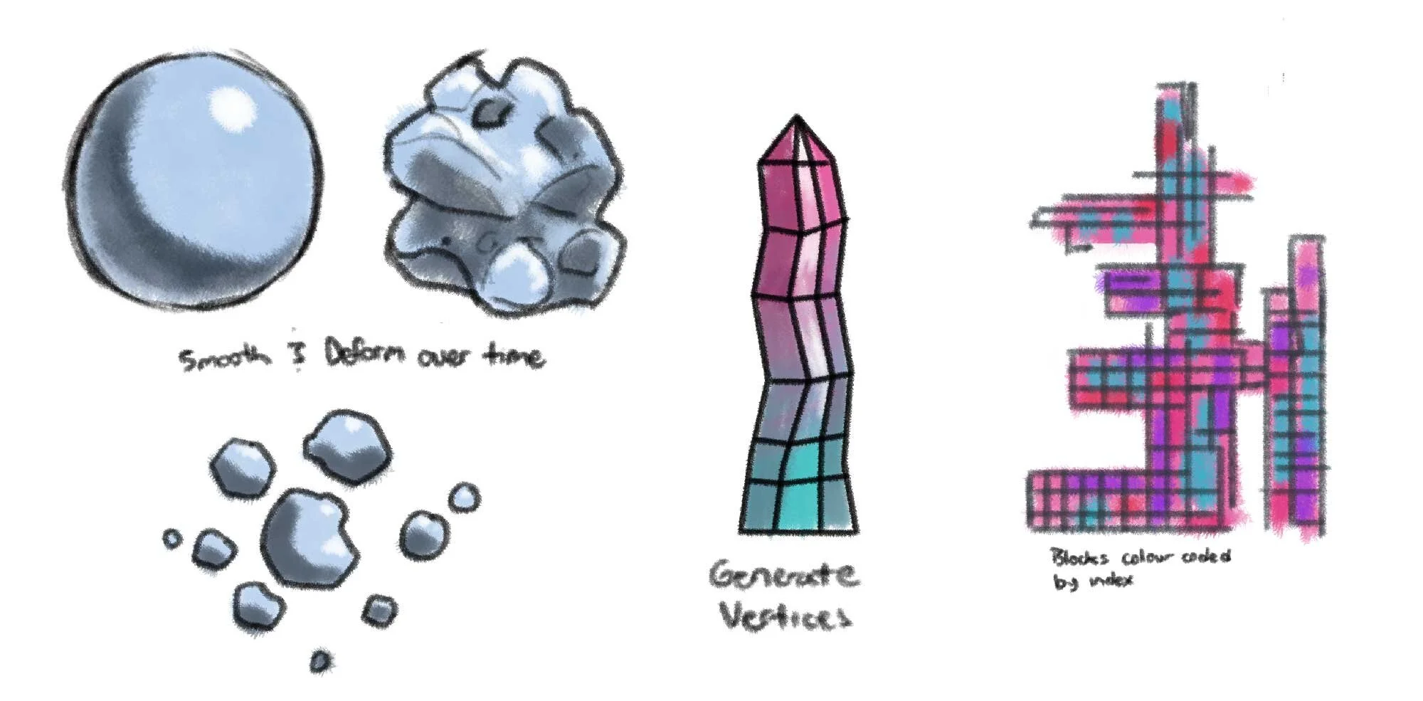 While considering the implications of these numbers, we came across Memo Pod, a data visualization project that procedurally generated a 3D sculpture using data from multiple sources collected during the 2020 lockdown in New York City. We were intrigued by its use of the different data points to guide its construction, and our team set out to apply the same logic to the five indices in our data.